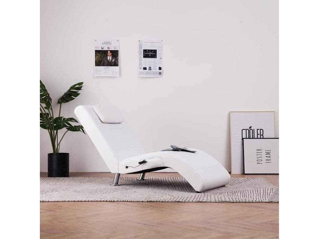 Multidom Masážna leňoška s vankúšom, biela, umelá koža