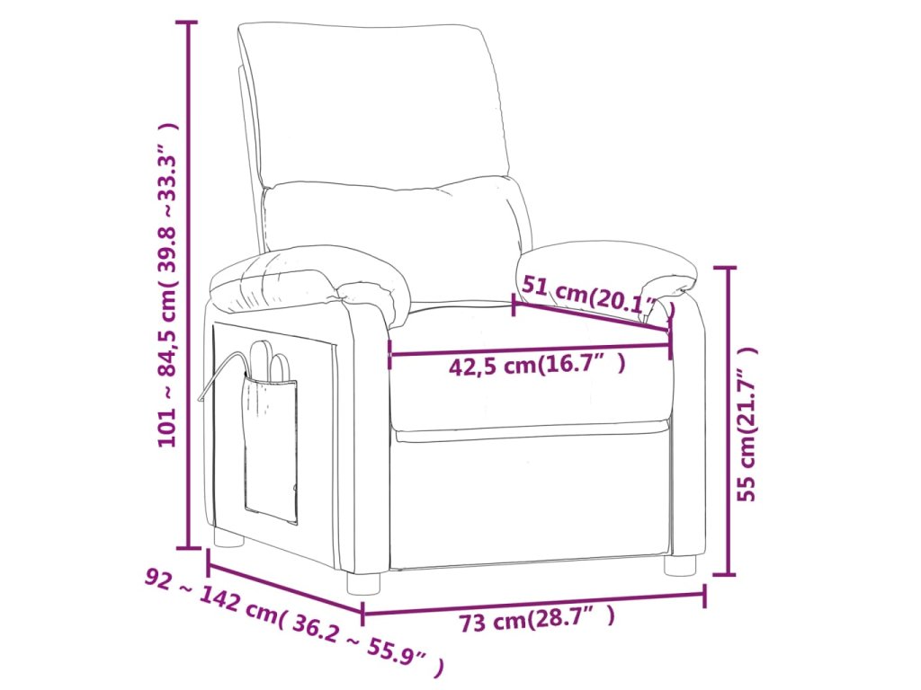 • Rozmery v polohe na ležanie: 73 x 142 x 84,5 cm (Š x H x V)