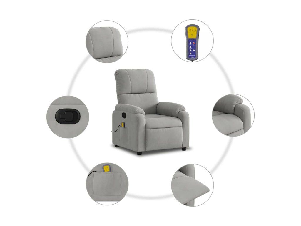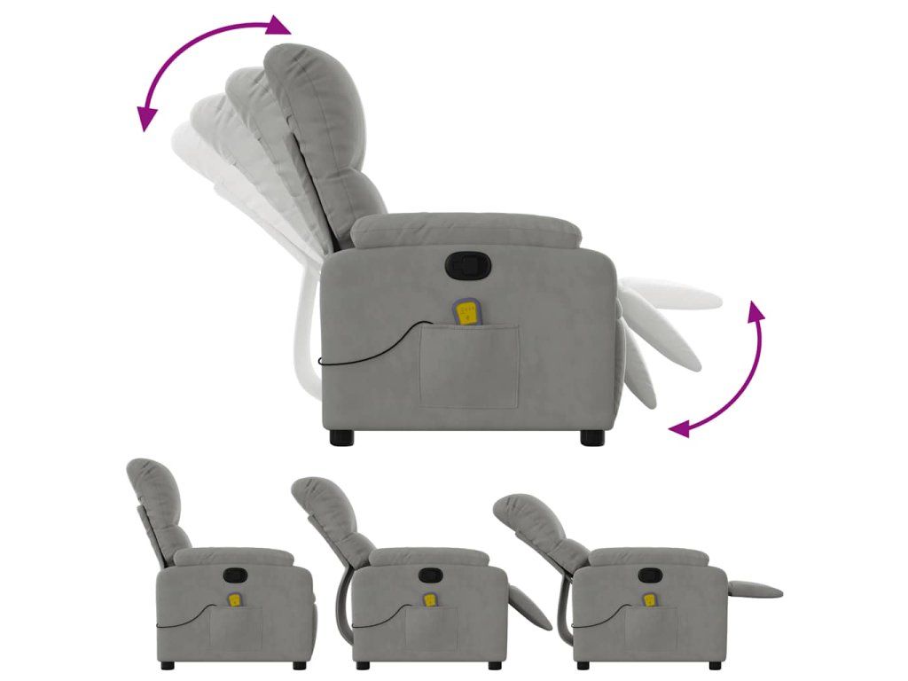 Multidom Masážne polohovacie kreslo bledosivé mikrovláknová látka
