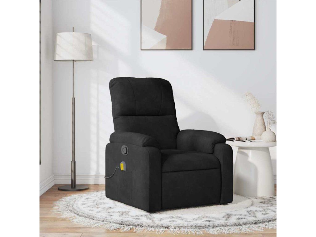 Multidom Masážne polohovacie kreslo čierne mikrovláknová látka