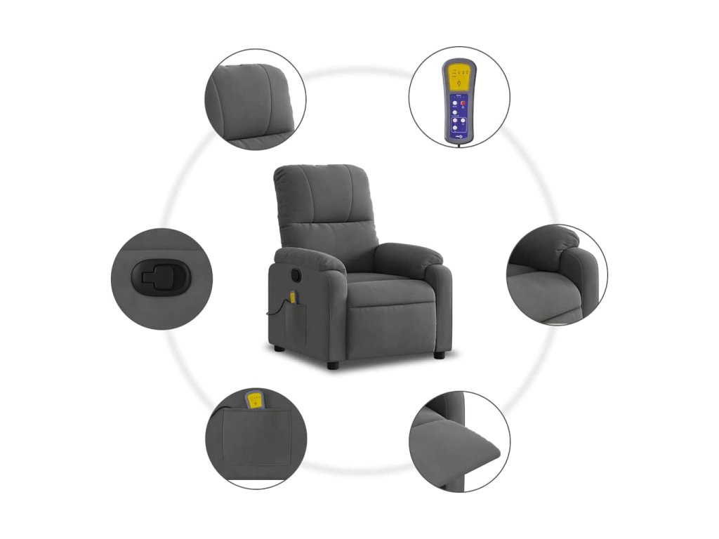 Multidom Masážne polohovacie kreslo tmavosivé mikrovláknová látka