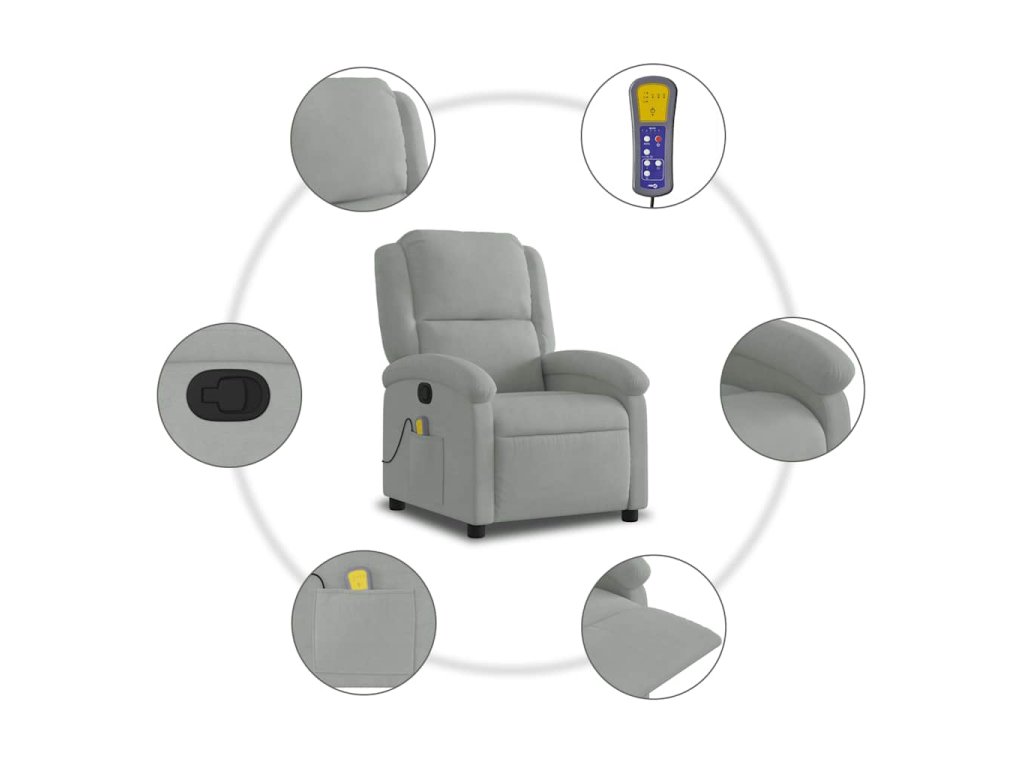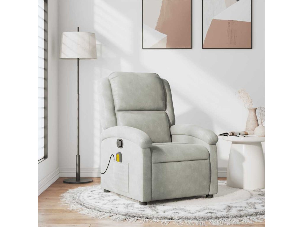 Multidom Masážne sklápacie kreslo bledosivé zamatové