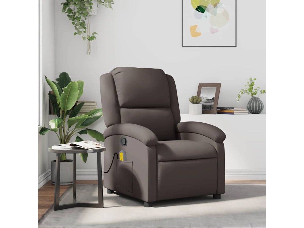 Multidom Masážne sklápacie kreslo tmavo hnedé pravá koža
