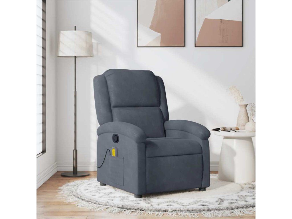 Multidom Masážne sklápacie kreslo tmavosivé zamatové