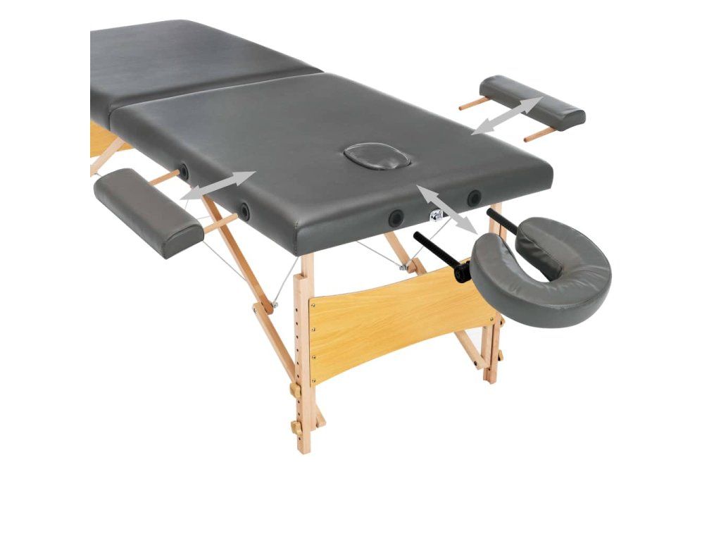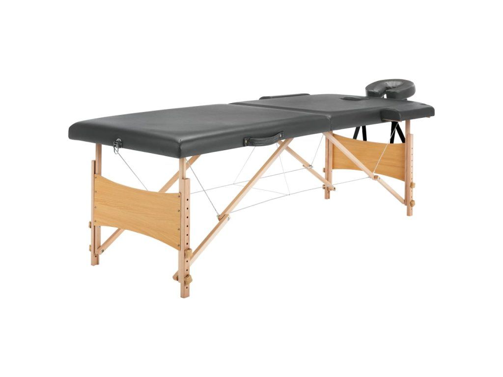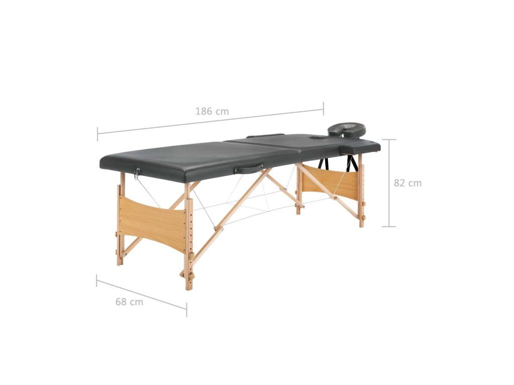 Multidom Masážny stôl s 2 zónami, drevený rám, antracitový 186x68 cm