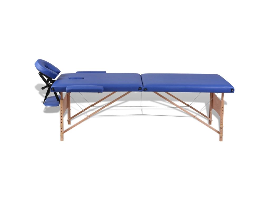 Multidom Modrý skladací masážny stôl, 2 zóny, drevený rám