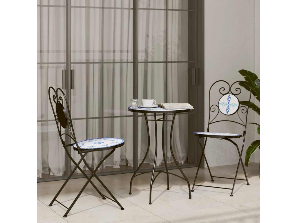Multidom Mozaiková bistro súprava modro-biela železo a keramika