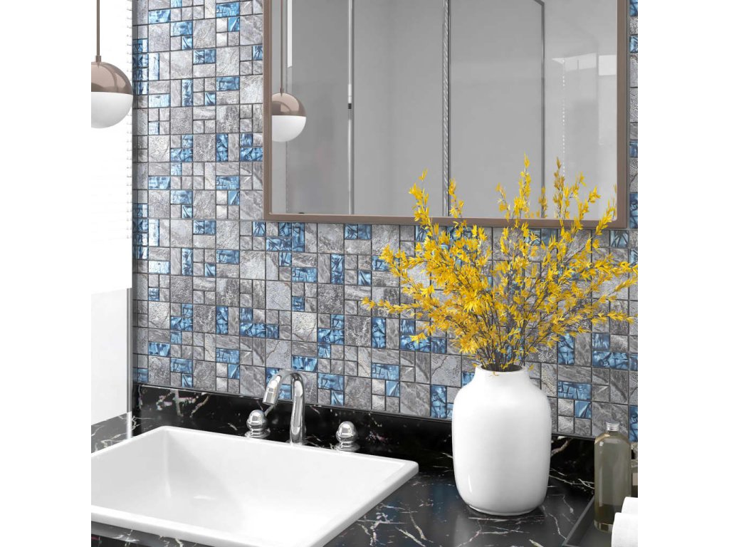 Multidom Mozaikové dlaždice 22 ks, sivo modré 30x30 cm, sklo