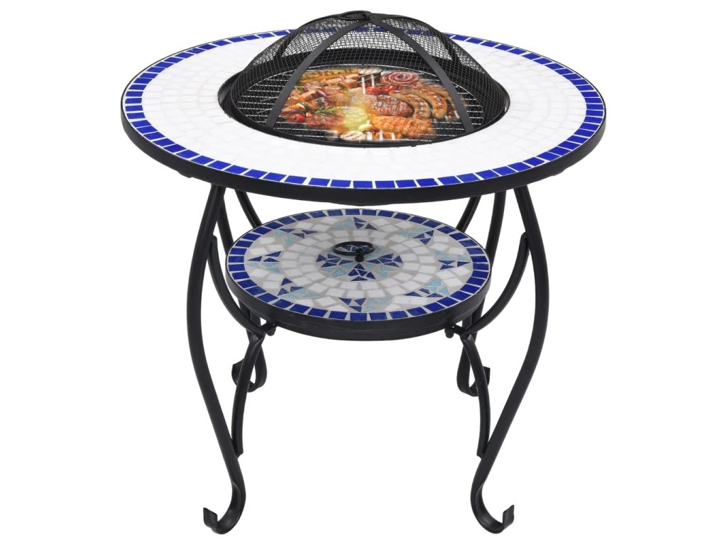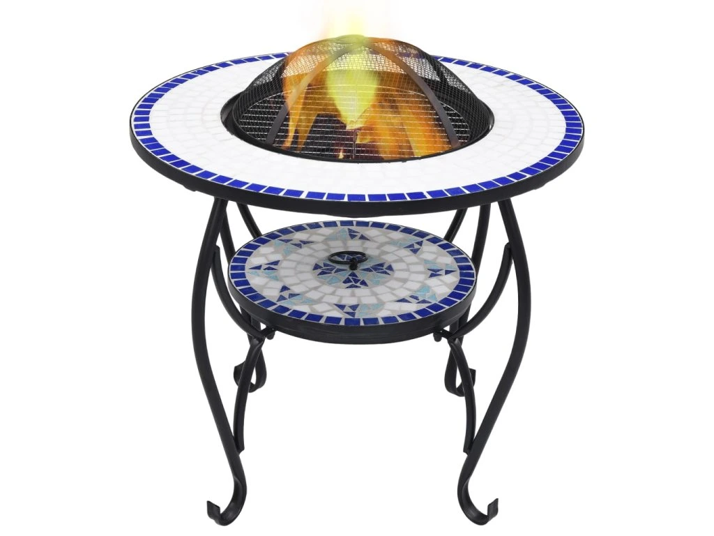 Multidom Mozaikové ohnisko so stolom, modro biele 68 cm, keramika