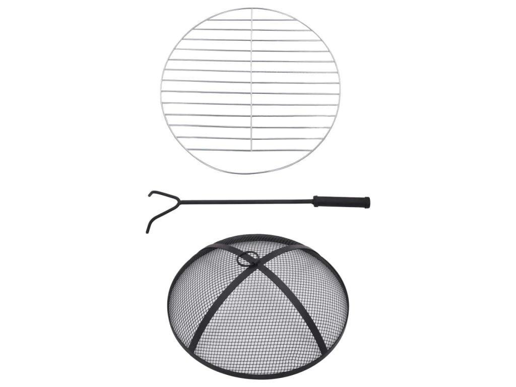 Ohnisko je vyrobené z ocele a dokáže vynikajúco absorbovať a vyžarovať teplo. Môžete v ňom páliť suché drevo, polená alebo drevené uhlie. Ohnisko podopiera štvornohý stojan. Bezpečnostný sieťovaný kryt, ktorý je súčasťou balenia, vám umožní sledovať horiaci oheň a zároveň vás ochráni pred poletujúcimi iskrami a popolom, pretože ohnisko bezpečne zakryje. Odstrániť ho môžete kutáčom, ktorý vám tiež poslúži na prehrabávanie horiacich polienok či uhlia. Ohnisko so stolíkom navyše môžete využívať aj ako gril. Okrúhly keramický povrch predstavuje ideálne miesto na nápoje a grilovacie náčinie. Upozorňujeme, že nie je vhodné výrobok nechávať vonku v chladnom počasí.