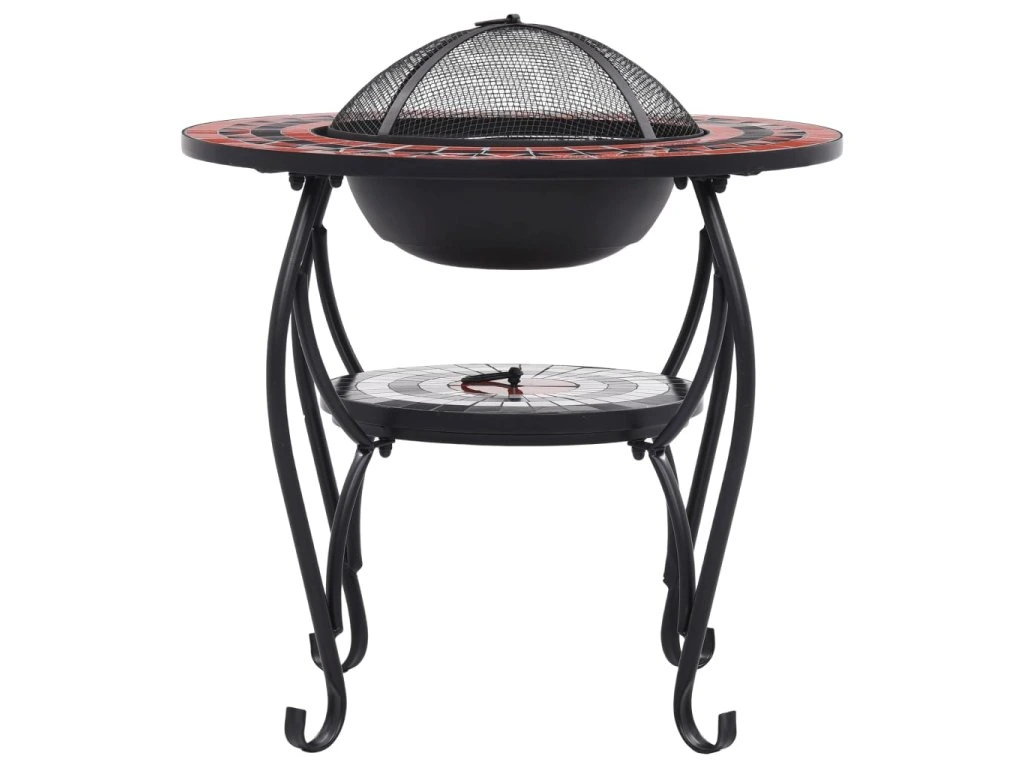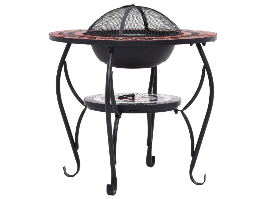 Ohnisko je vyrobené z ocele a dokáže vynikajúco absorbovať a vyžarovať teplo. Môžete v ňom páliť suché drevo, polená alebo drevené uhlie. Ohnisko podopiera štvornohý stojan. Bezpečnostný sieťovaný kryt, ktorý je súčasťou balenia, vám umožní sledovať horiaci oheň a zároveň vás ochráni pred poletujúcimi iskrami a popolom, pretože ohnisko bezpečne zakryje. Odstrániť ho môžete kutáčom, ktorý vám tiež poslúži na prehrabávanie horiacich polienok či uhlia. Ohnisko so stolíkom navyše môžete využívať aj ako gril. Okrúhly keramický povrch predstavuje ideálne miesto na nápoje a grilovacie náčinie. Upozorňujeme, že nie je vhodné výrobok nechávať vonku v chladnom počasí.