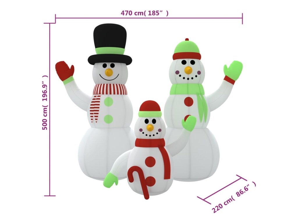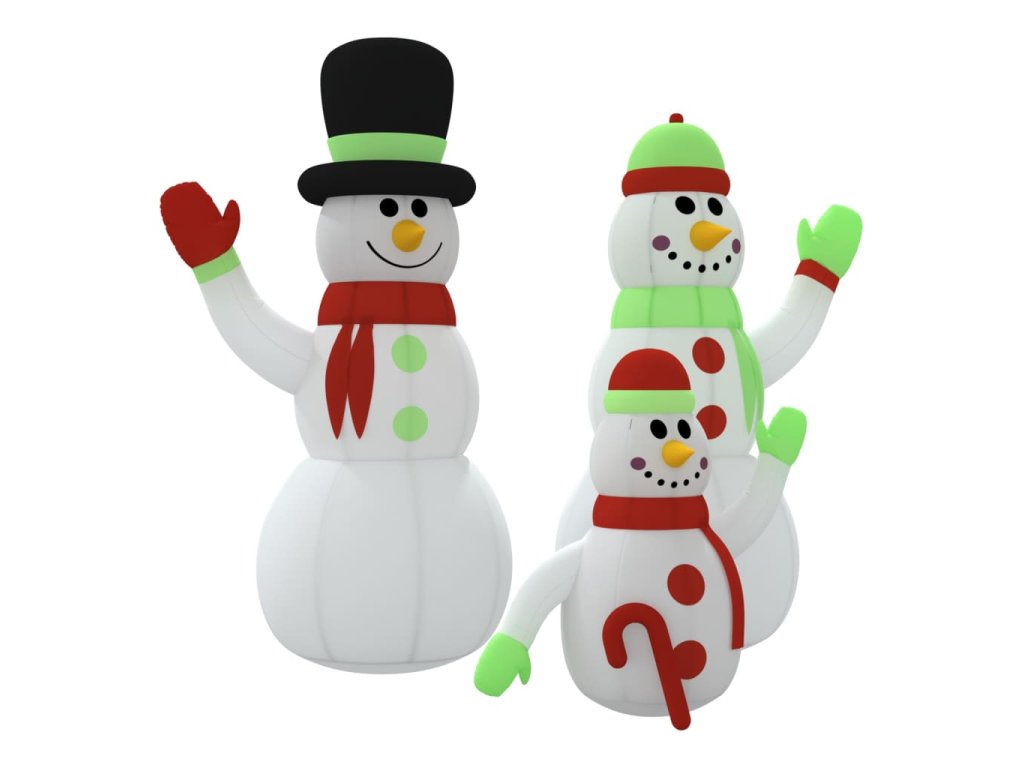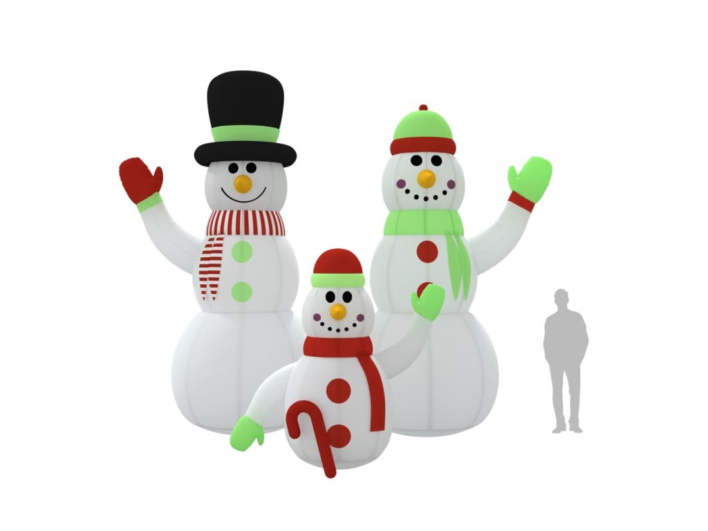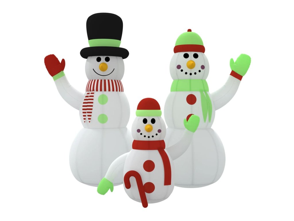 Táto nafukovacia rodinka snehuliakov je určite skvelou voľbou, ak hľadáte pôsobivú dekoráciu pre váš dom alebo dvor v čase Vianoc.