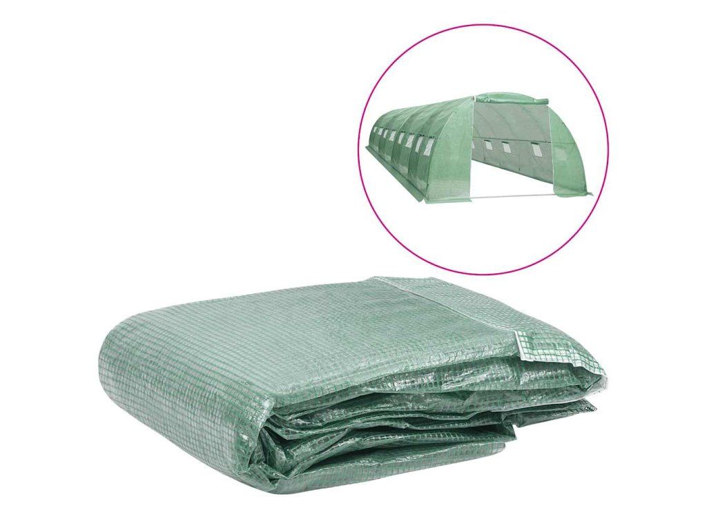 Náhradná plachta na skleník je vyrobená z PE, ktorý je ťažší než štandardná sieťovina. Skleníková plachta disponuje 16 okienkami na vetranie a 1 dverami.