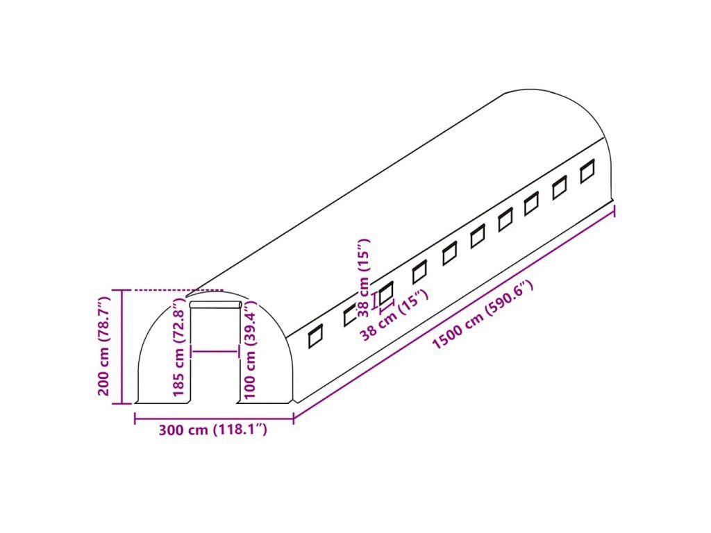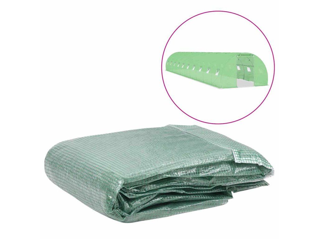 Náhradná plachta na skleník je vyrobená z PE, ktorý je ťažší než štandardná sieťovina. Skleníková plachta disponuje 20 okienkami na vetranie a 1 dverami.
