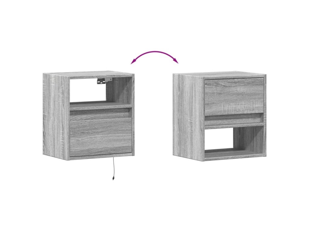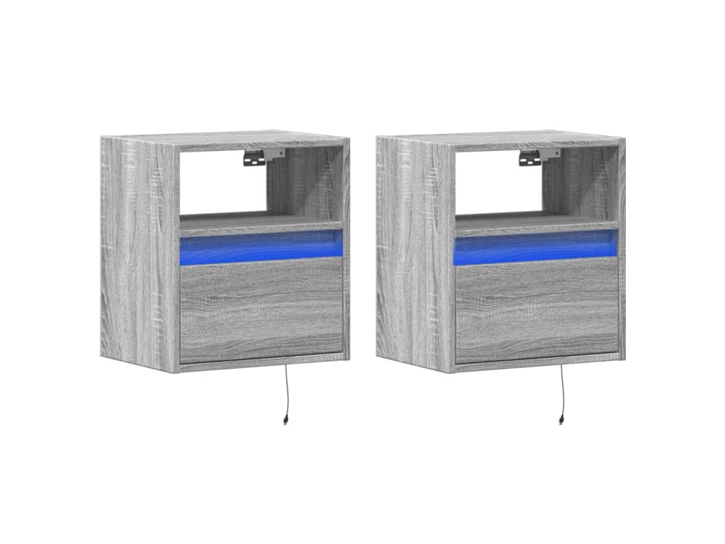 Multidom Nástenné nočné skrinky s LED osvetlením 2 ks sivé sonoma