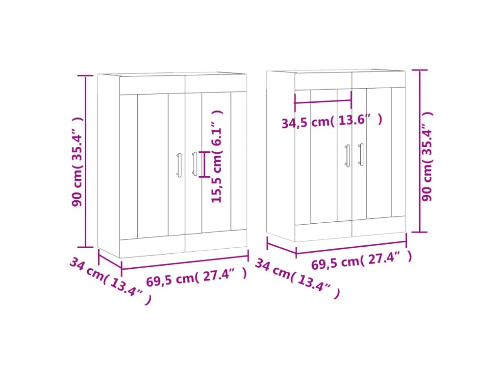 - Rozmery (každý): 69,5 x 34 x 90 cm (Š x H x V)
