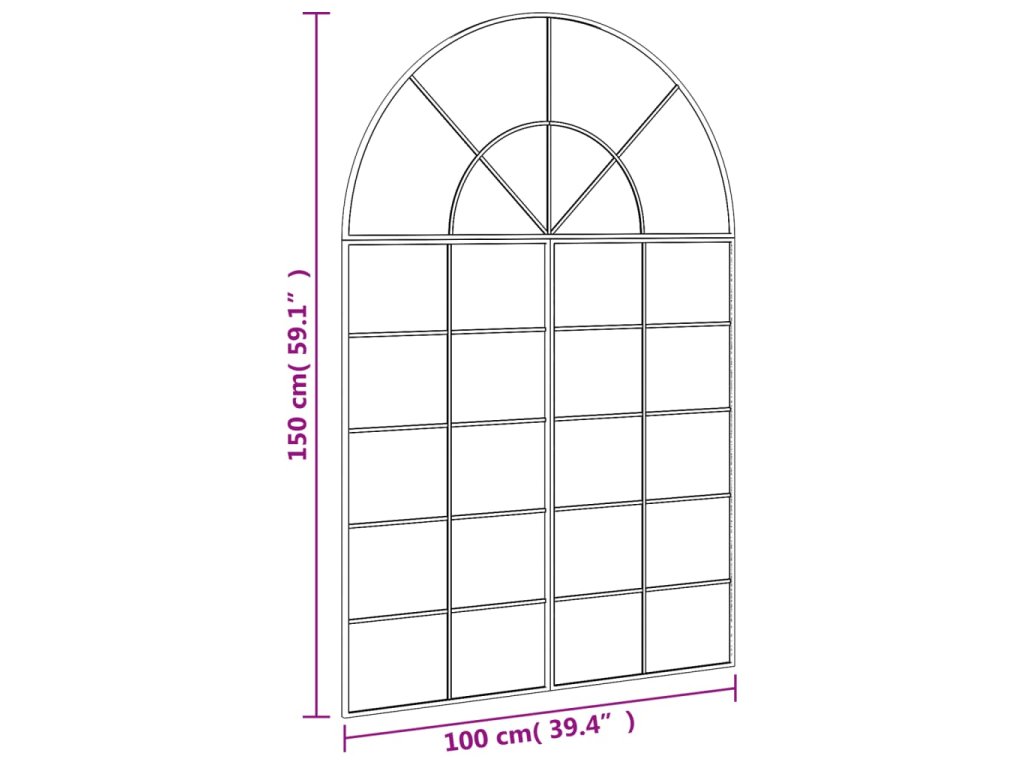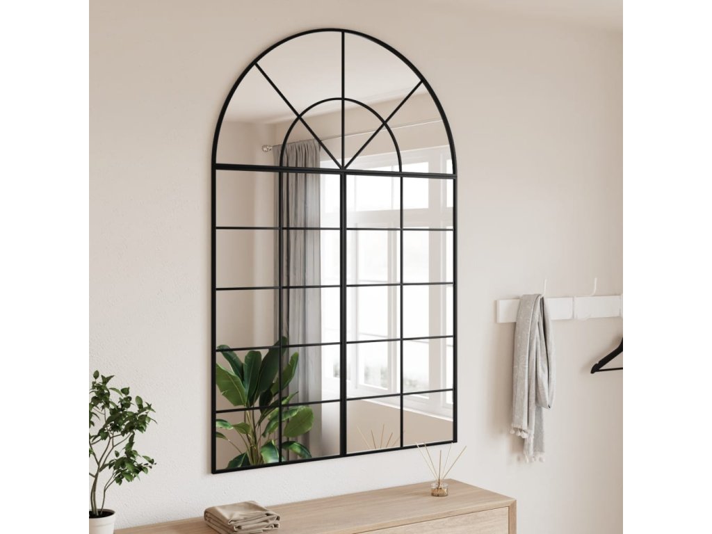 Multidom Nástenné zrkadlo čierne 100x150 cm oblúkové železné
