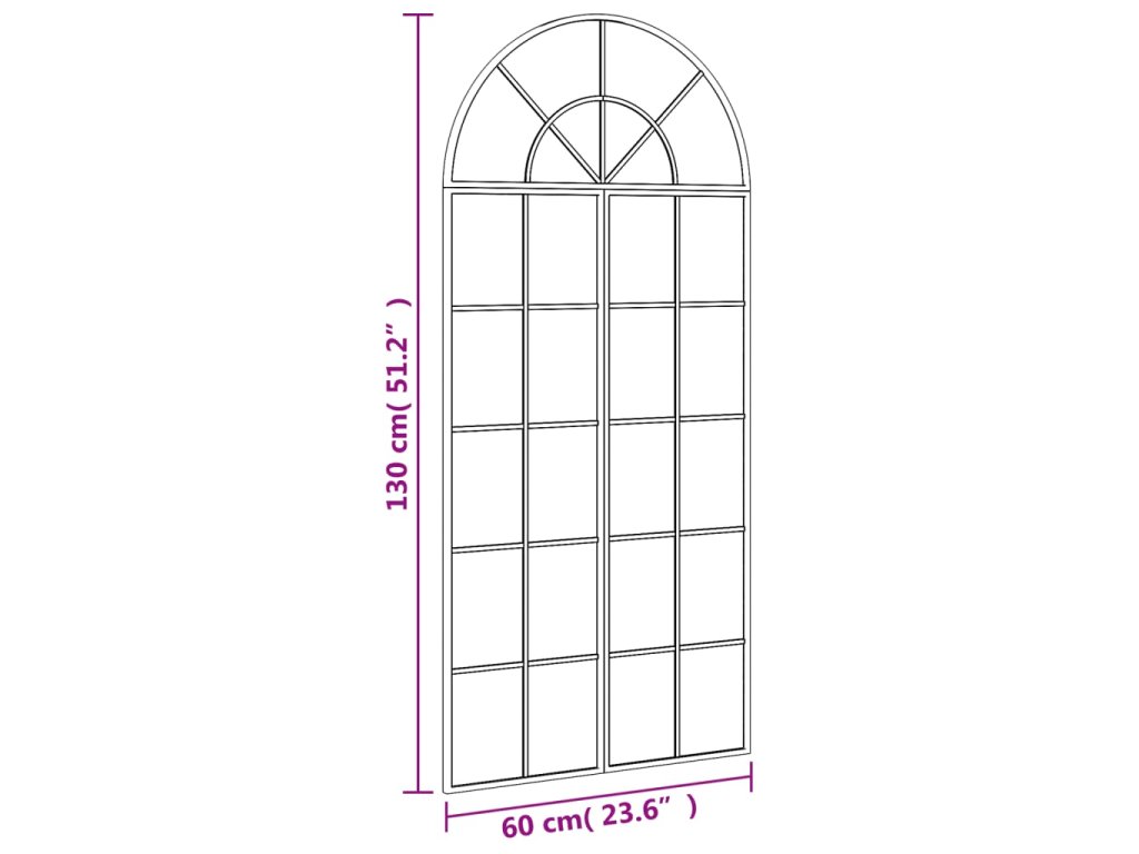Multidom Nástenné zrkadlo čierne 60x130 cm oblúkové železné