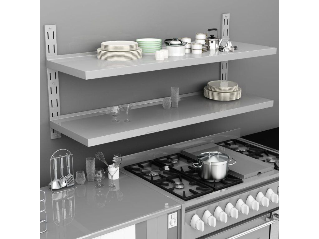 Kuchynský nástenný regál je vyrobený z nehrdzavejúcej ocele a je mimoriadne trvácny, stabilný a ľahko sa čistí, vďaka čomu je dokonalý tam, kde sa vyžaduje vysoký hygienický štandard. Regál má celkovú nosnosť 40 kg. V balení sa nachádza aj montážne príslušenstvo, vďaka ktorému sa nástenný regál jednoducho montuje.