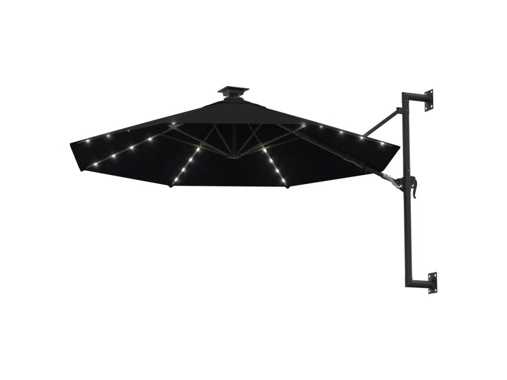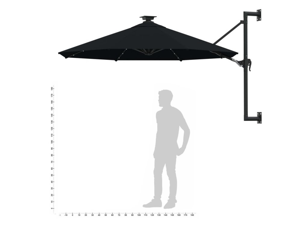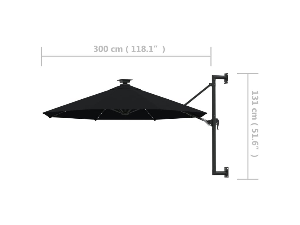 Multidom Nástenný záhradný slnečník s LED 300 cm, čierny