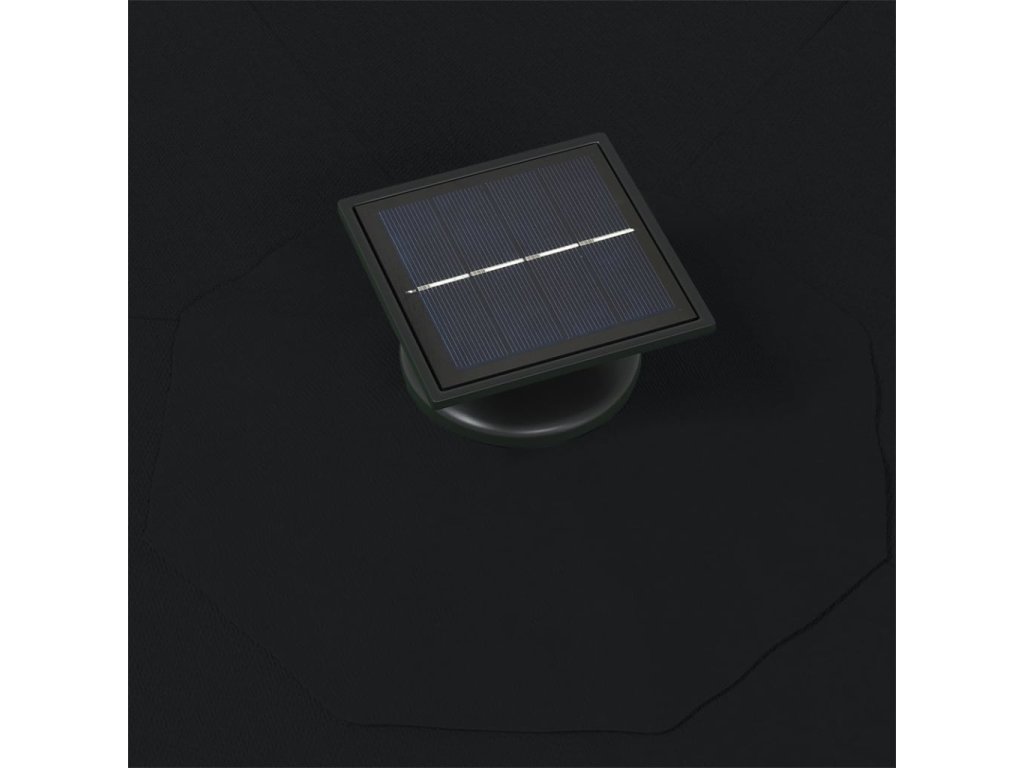 Kryt slnečníka je vyrobený z polyesteru, ktorý chráni proti UV žiareniu a je odolný voči vyblednutiu. Poskytne vám optimálnu ochranu pred slnkom a ľahko sa čistí. Exkluzívny dizajn tohto dáždnika vám umožňuje nakloniť ho, aby blokoval slnko, aj keď zapadá k obzoru. Silná kovová tyč s 8 odolnými rebrami robí nástenný slnečník veľmi stabilným a odolným. Záhradný dáždnik sa dá ľahko otvárať a zatvárať vďaka kľukovému mechanizmu. 28 integrovaných LED svetiel v noci vytvorí útulné a romantické prostredie.