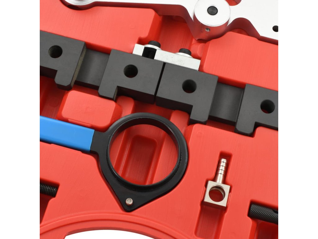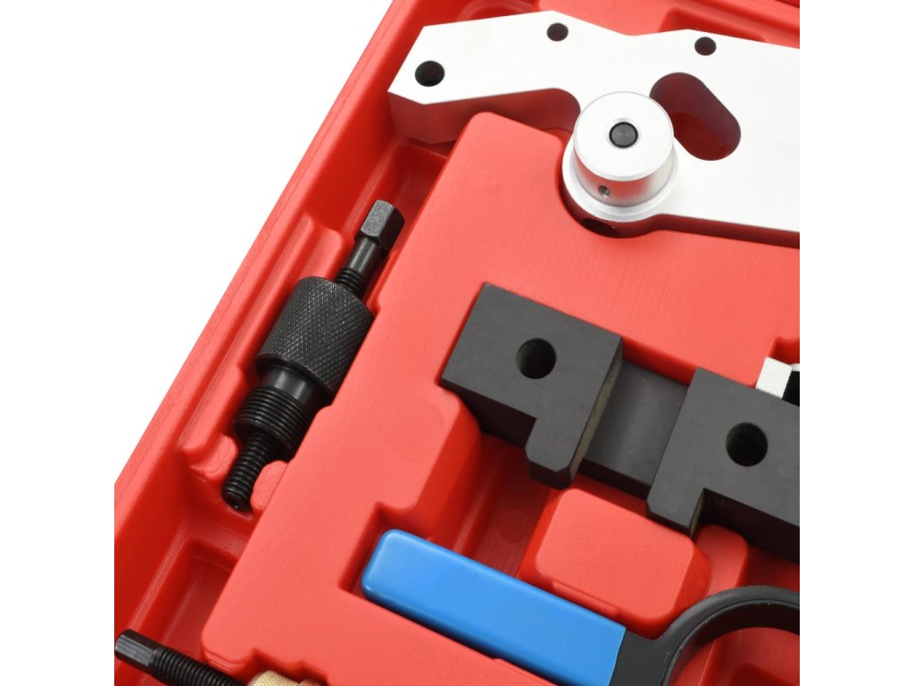Táto sada náradia je vyrobená z odolnej ocele a ľahkého hliníka, ktoré sú veľmi odolné. Sada náradia na časovanie vačkového hriadeľa bude pri nastavovaní a kontrole motora nevyhnutným zariadením. Kufrík na jednoduché skladovanie a prepravu sa taktiež nachádza v balení.