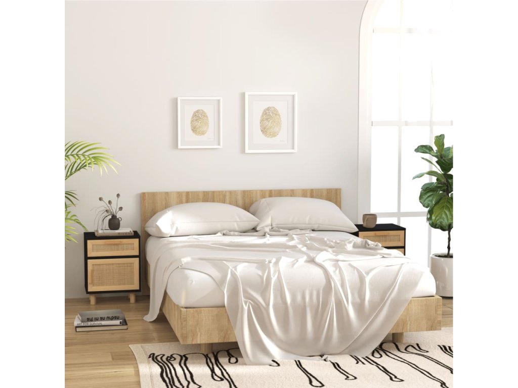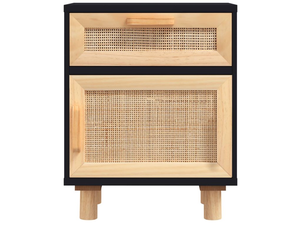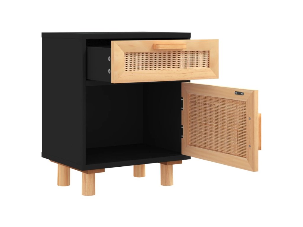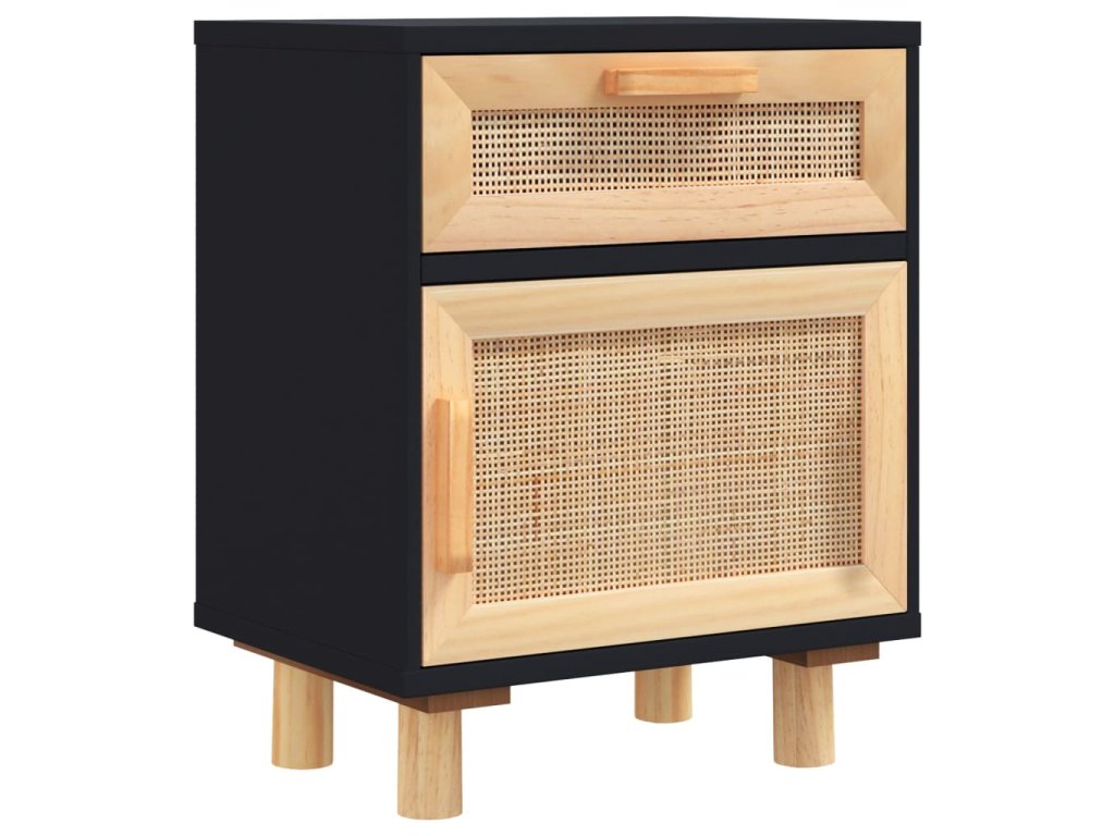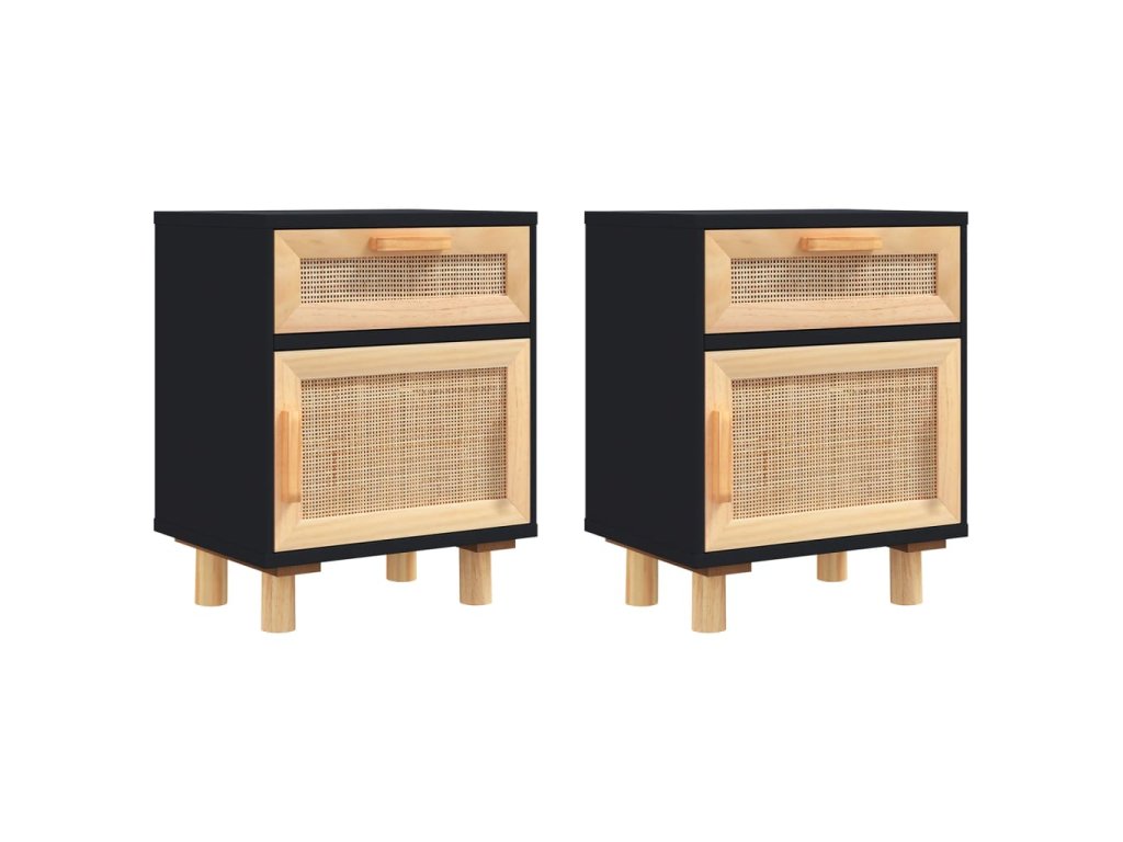 Multidom Nočné skrinky 2 ks čierne masívna borovica a prírodný ratan