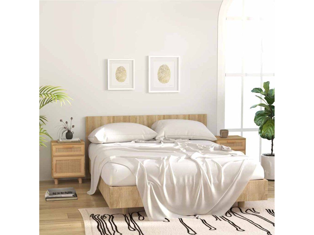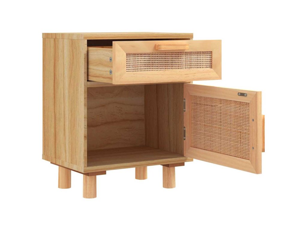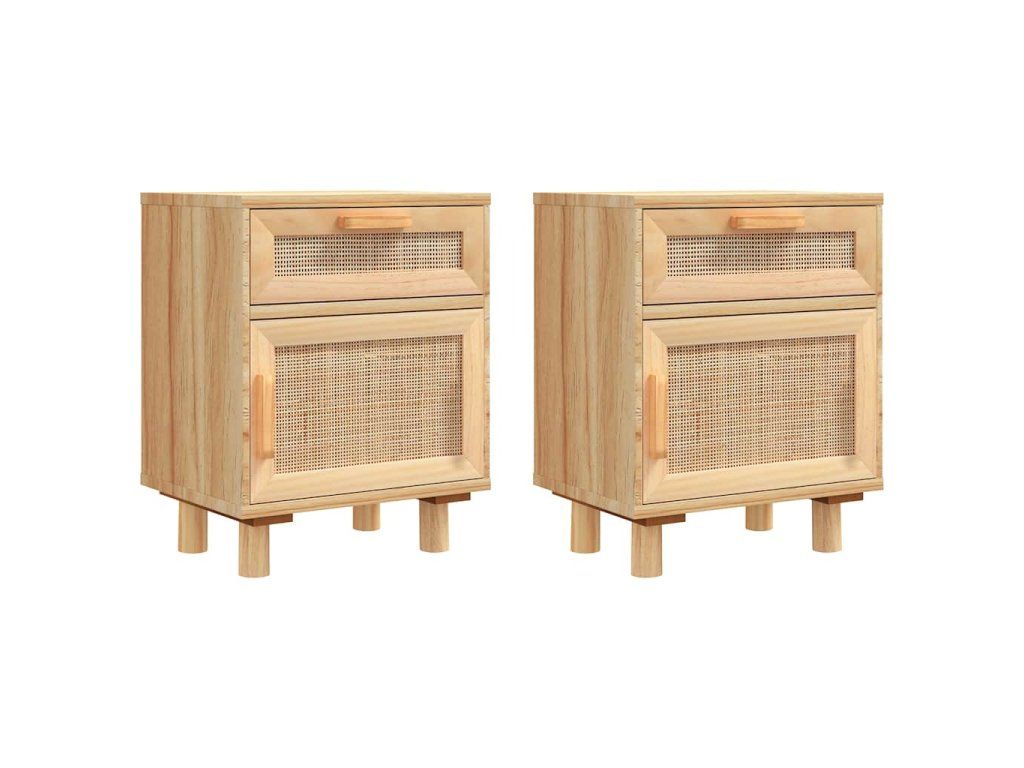 Multidom Nočné skrinky 2 ks Hnedá masívna borovica a prírodný ratan