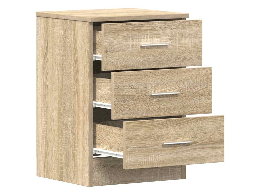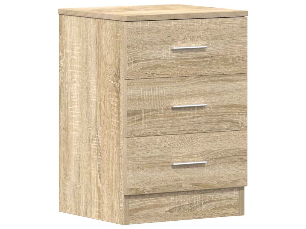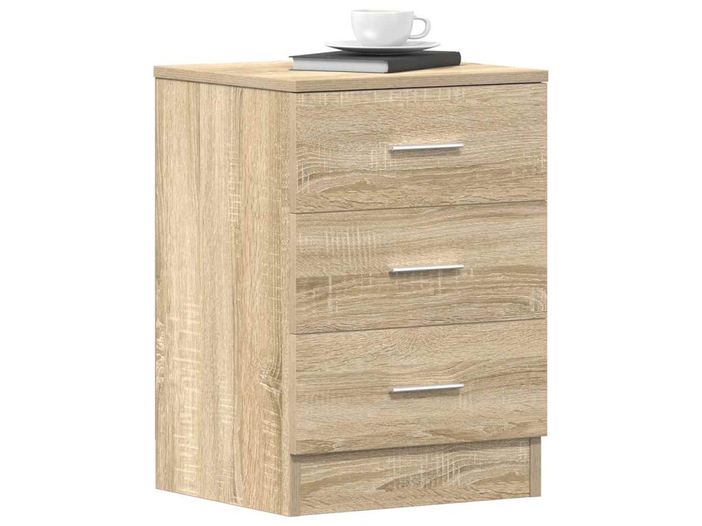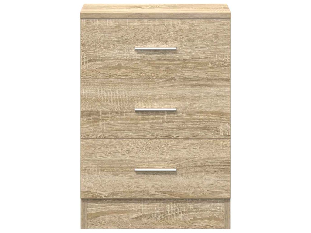Nočný stolík je vyrobený z kvalitného kompozitného dreva, vďaka čomu je robustný, trvácny a všestranný. Predstavuje univerzálnu skrinku do rôznych miestností, a preto ho môžete využívať napríklad aj v obývačke ako stolík ku gauču. Tri zásuvky poskytujú množstvo priestoru na prehľadné odkladanie časopisov, kníh, ovládačov a iných drobností, ktoré chcete mať vždy poruke. Nočný stolík sa navyše dá ľahko očistiť navlhčenou handričkou.