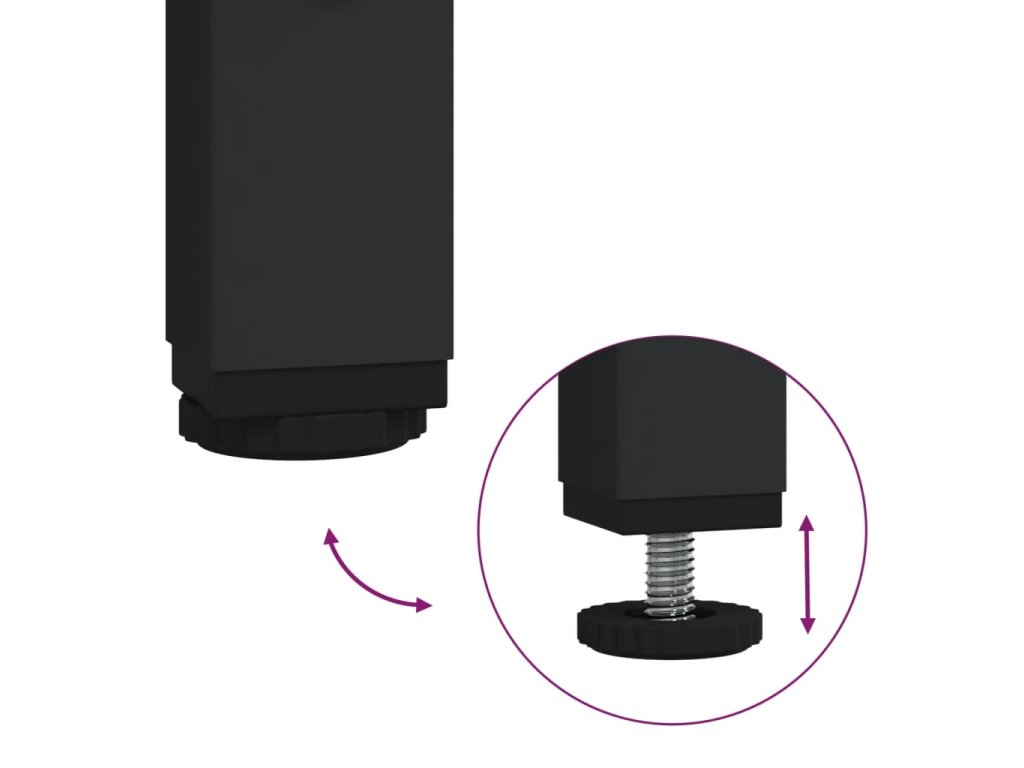 - Nastaviteľné nožičky: Štyri nastaviteľné nožičky s plastovými podložkami udržujú bočnú skrinku vyváženú aj na nerovnom teréne a zvyšujú stabilitu.