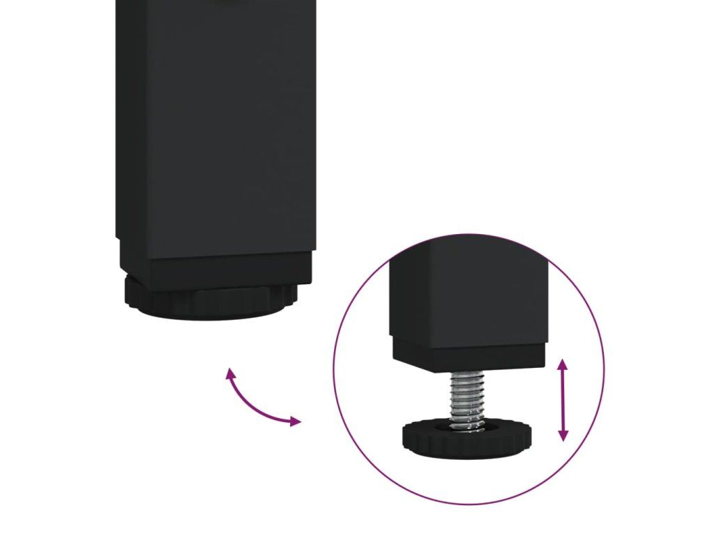 - Nastaviteľné nožičky: TV skrinka je vybavená 4 nastaviteľnými nožičkami, ktoré ochránia vašu podlahu pred poškriabaním a udržia ju stabilnú na nerovných podlahách.