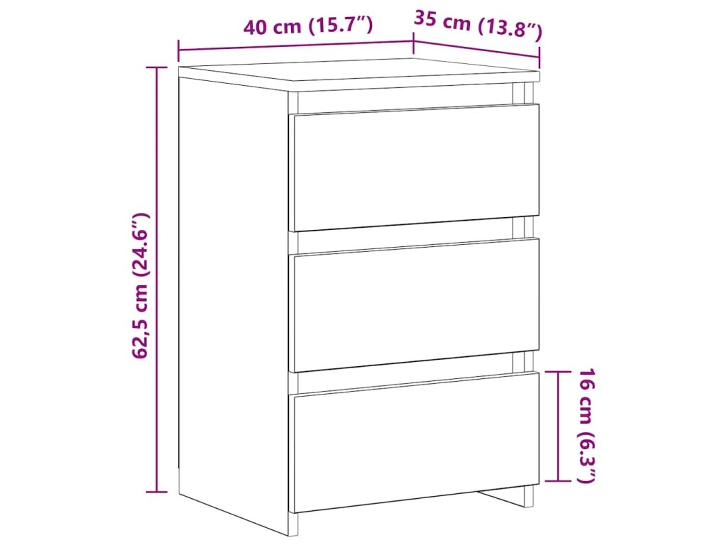 - Veľký úložný priestor: Nočný stolík má tri zásuvky. Dostatok úložného priestoru uľahčuje usporiadanie vecí.