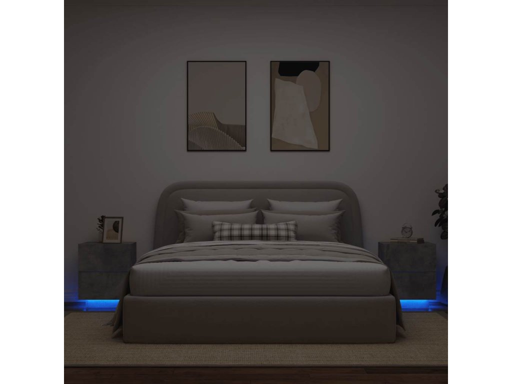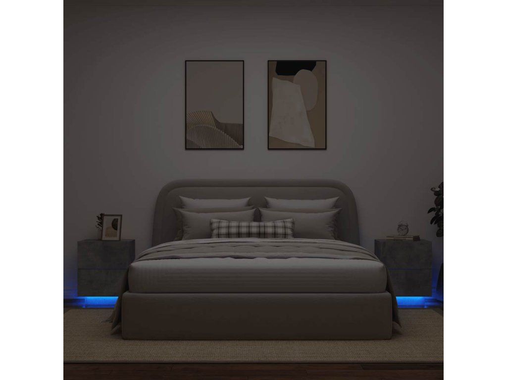 Multidom Nočné stolíky s LED svetlami 2ks betónovo sivý kompozitné drevo