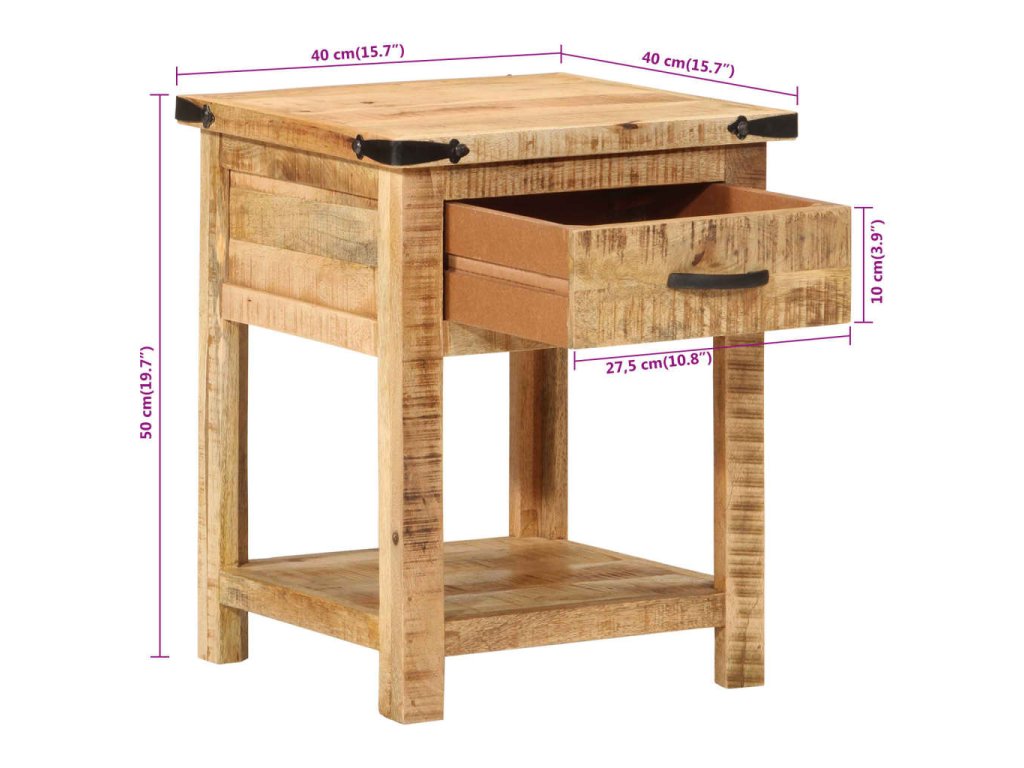 Multidom Nočný stolík 40x40x50 cm, mangový masív