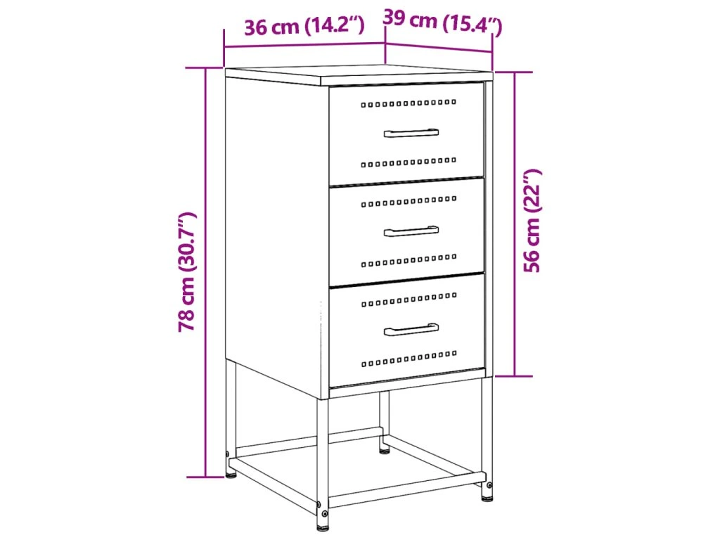- Ľahko sa čistí: Oceľový nočný stolík je odolný voči vlhkosti a ľahko sa čistí vlhkou handričkou.