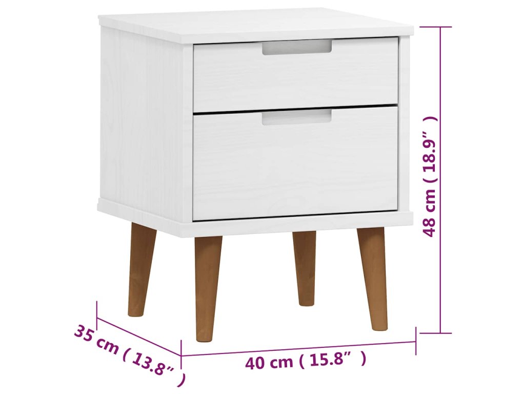 Multidom Nočný stolík MOLDE, biely 40x35x48 cm, borovicový masív