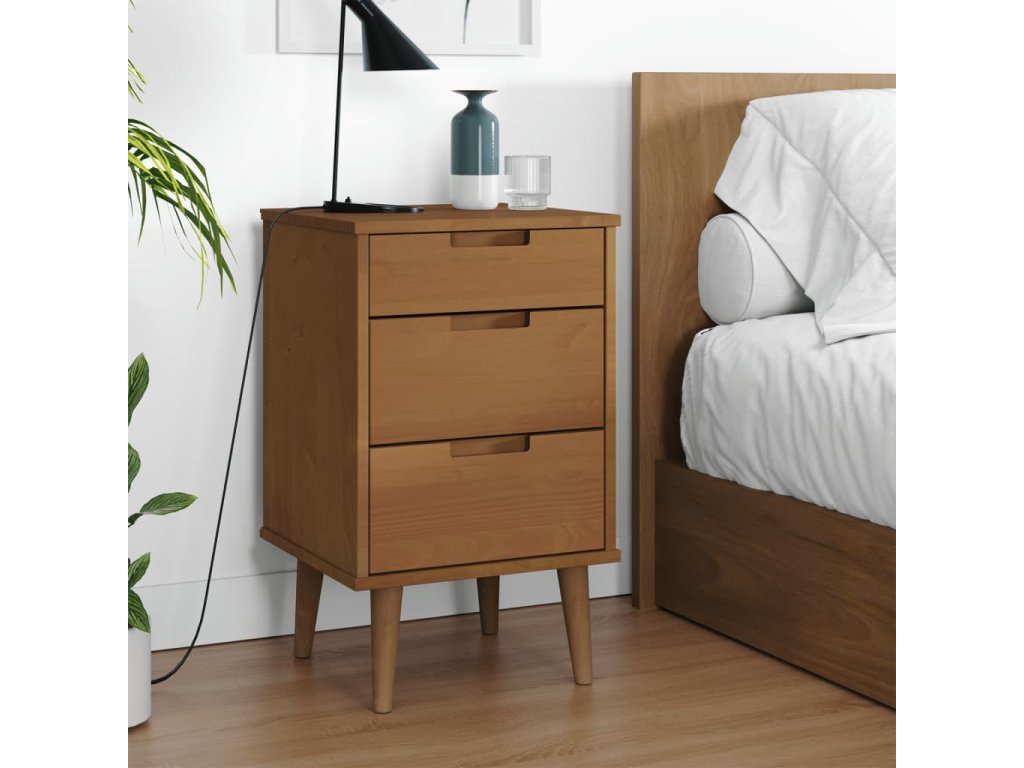 Multidom Nočný stolík MOLDE, hnedý 40x35x65 cm, borovicový masív