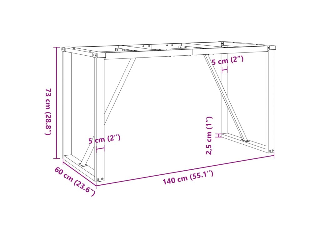 Multidom Nohy jedálenského stola O-rám 140x60x73 cm oceľ