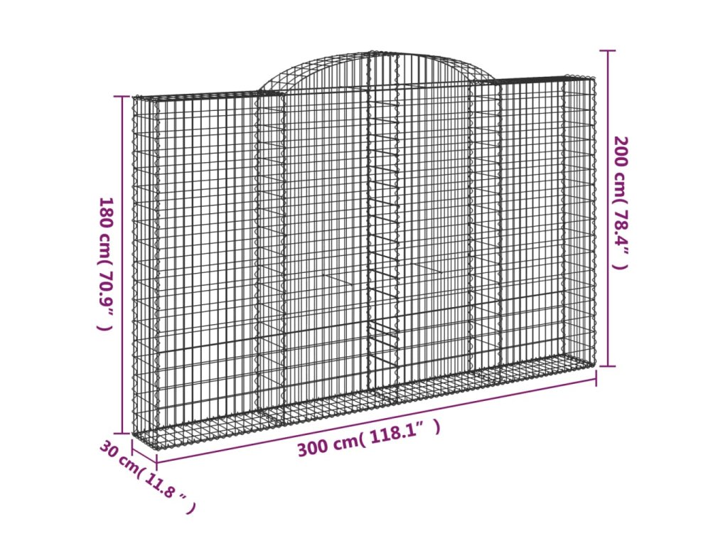 Multidom Oblúkové gabiónové koše 4ks 300x30x180/200cm pozinkované železo