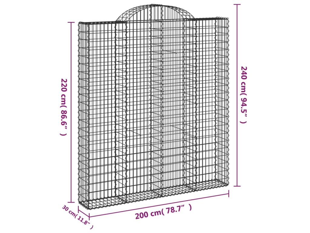 Multidom Oblúkové gabionové koše 7ks 200x30x220/240cm pozinkované železo