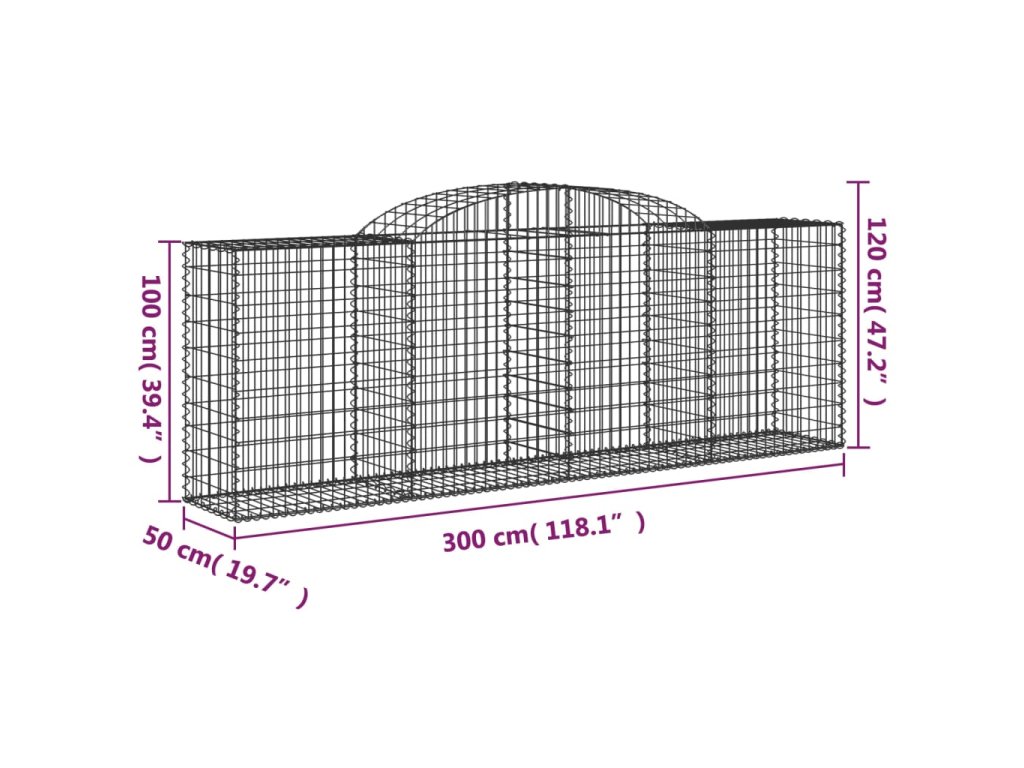 Multidom Oblúkové gabiónové koše 7ks 300x50x100/120cm pozinkované železo
