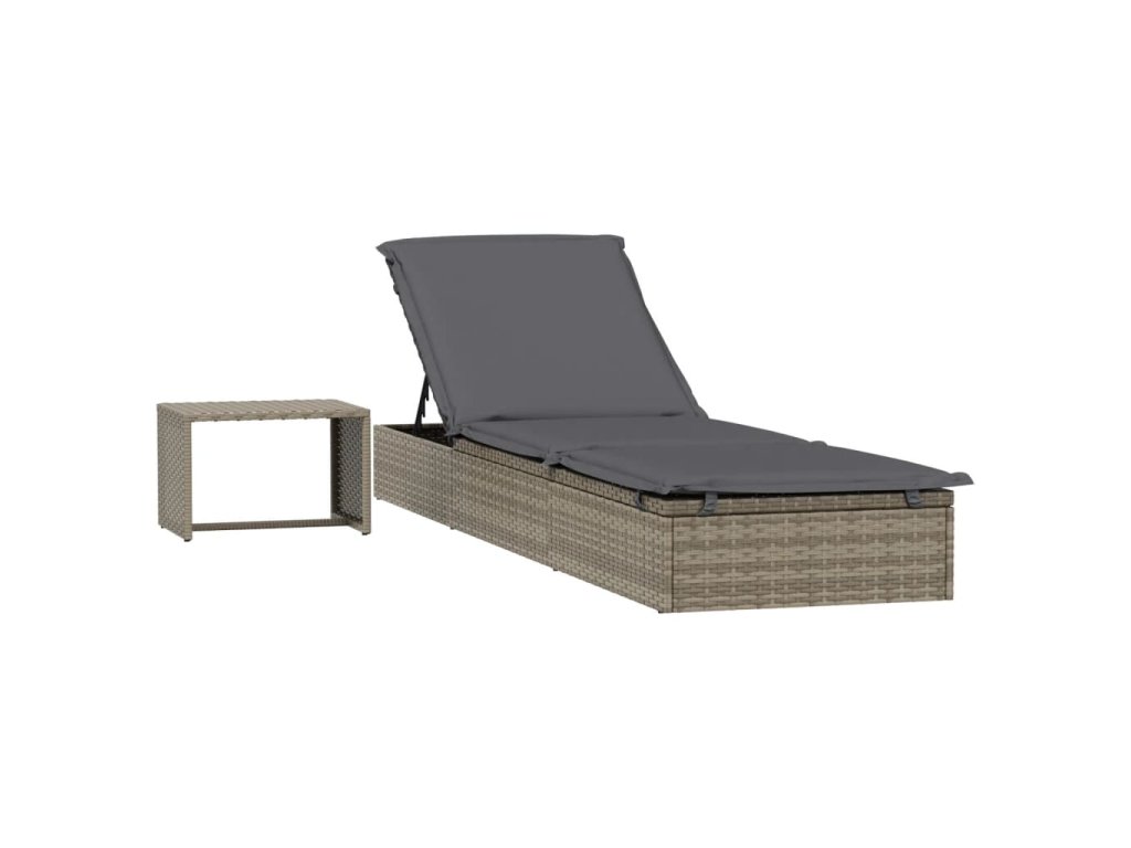Multidom Opaľovacie ležadlo 1 ks so stolíkom, sivé, polyratan