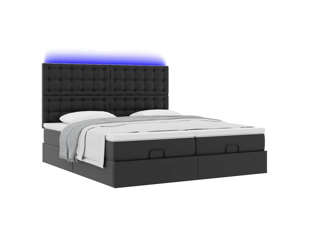 Multidom Osmanská posteľ s matracmi a LED čierna 180x200 cm umelá koža
