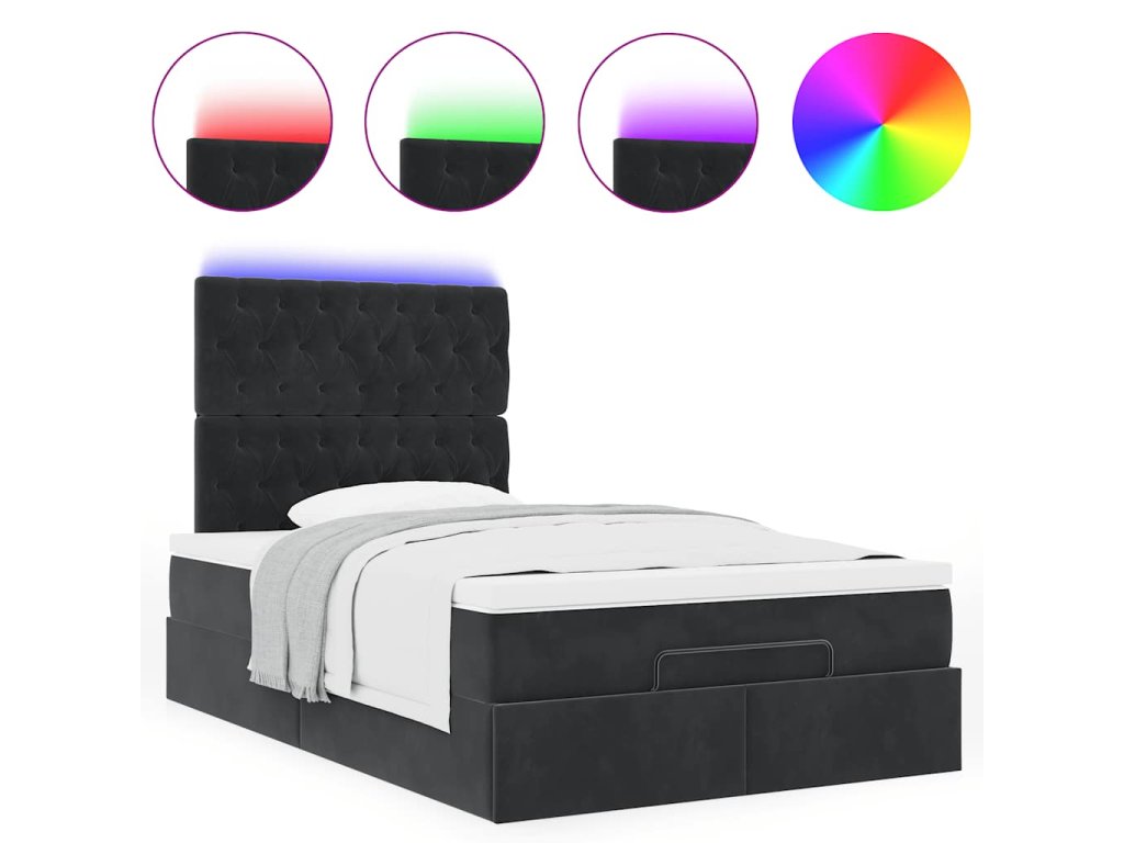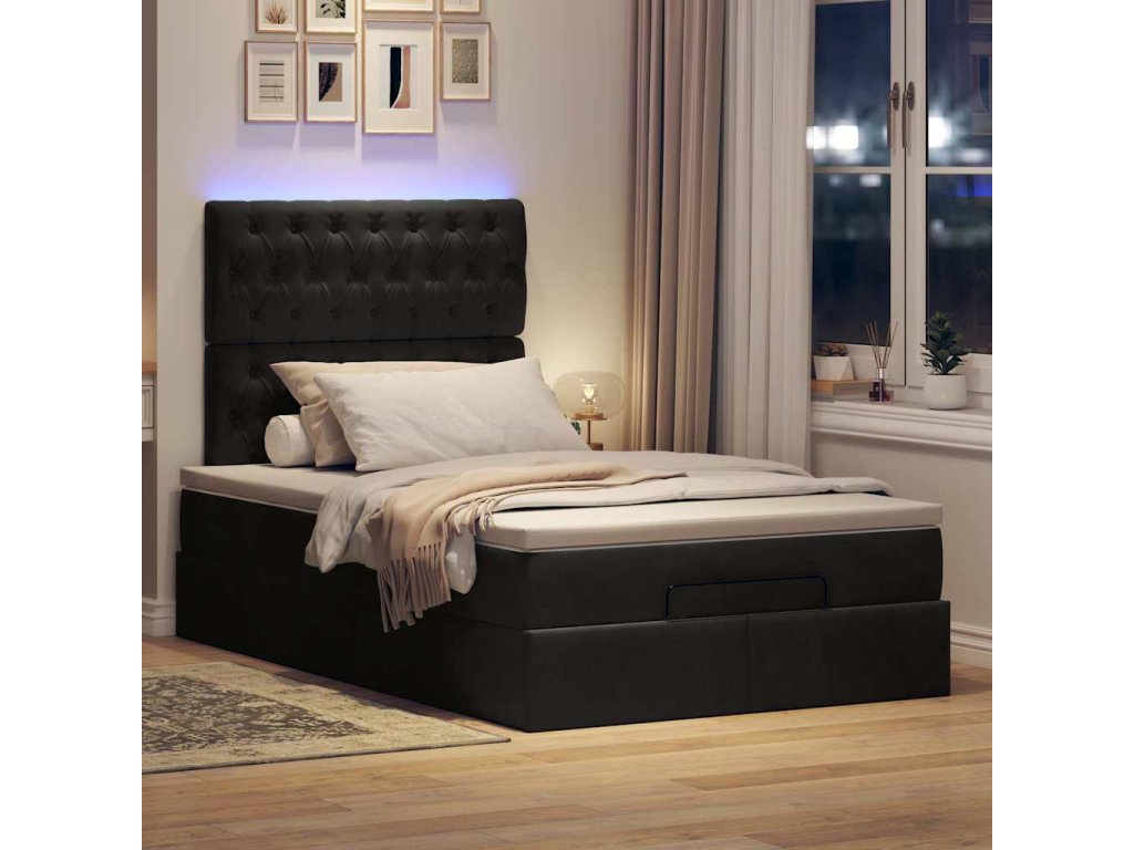 Multidom osmanská posteľ s matracmi a LED diódami čierna 120x200cm zamat