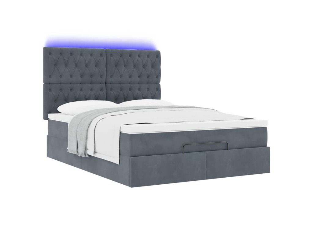 Multidom Osmanská posteľ s matracmi a LED diódami tmavosivá zamatová