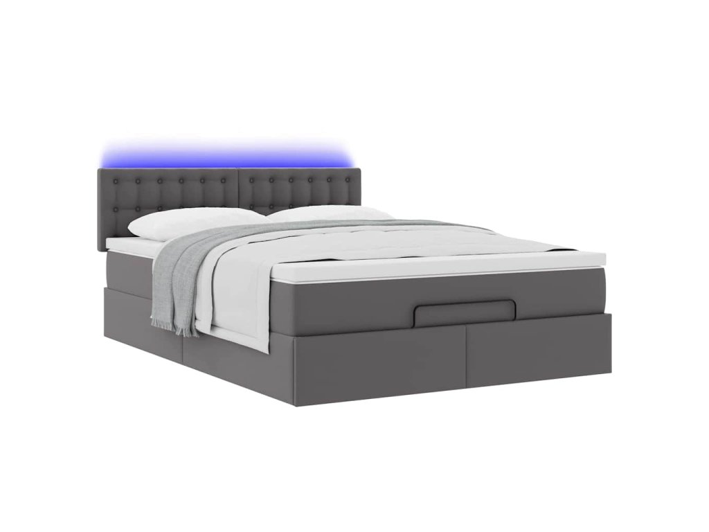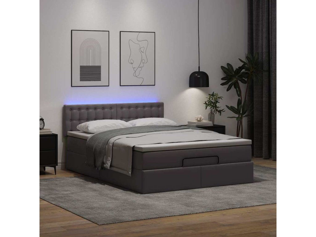 Multidom Osmanská posteľ s matracmi a LED sivá 140x200 cm umelá koža