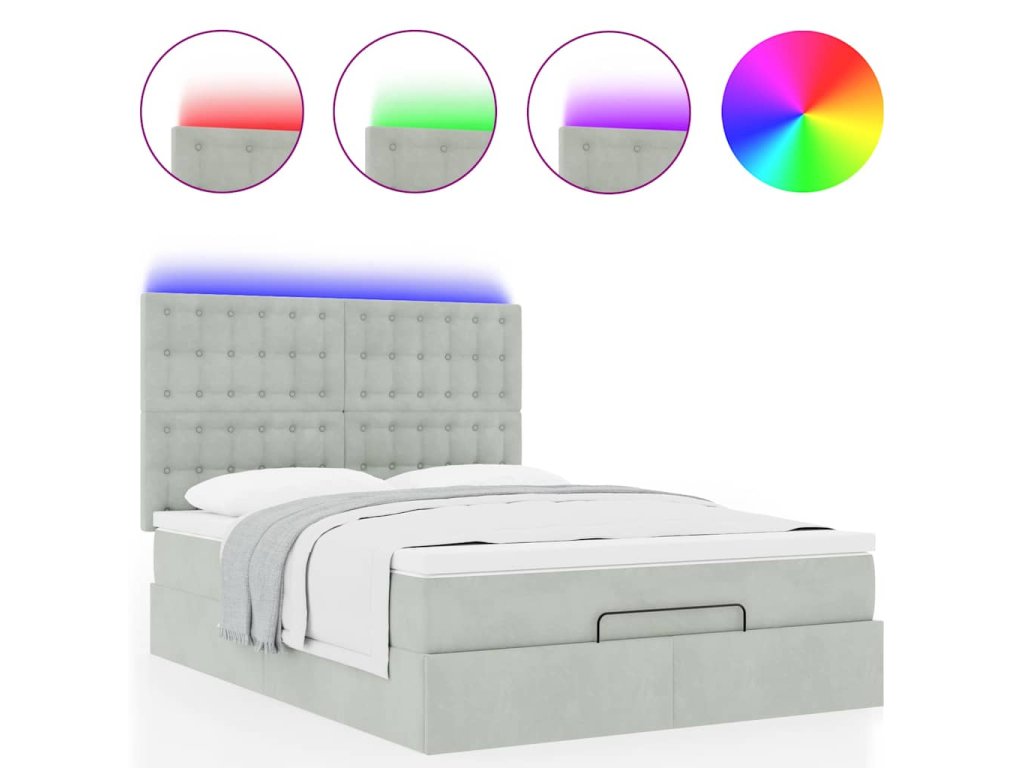 Multidom Osmanská posteľ s matracmi a LED svetlosivá 140x200cm zamatová