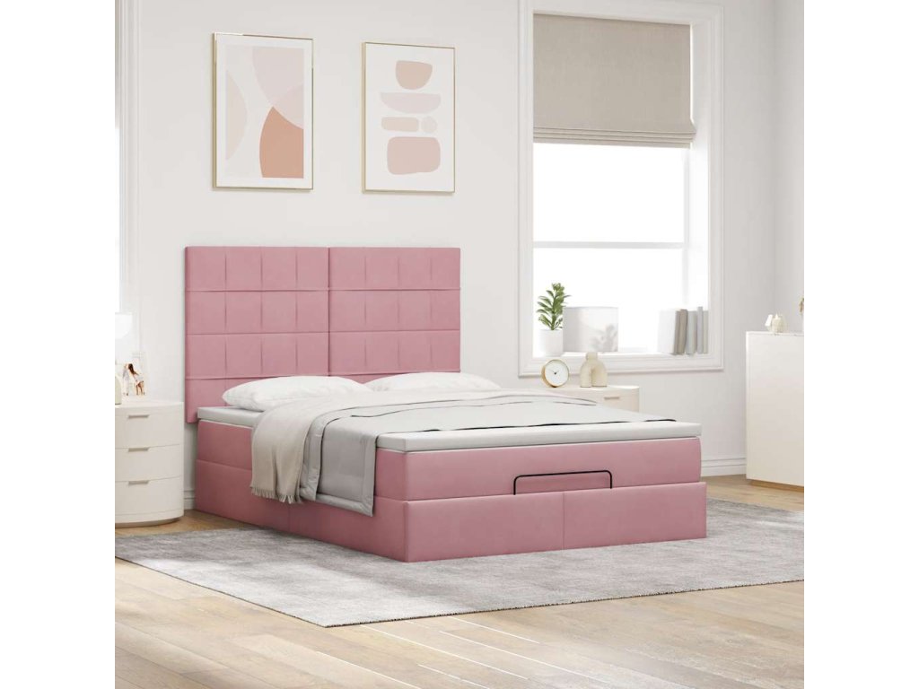 Multidom Osmanská posteľ s matracmi Ružová 140x200cm Zamat