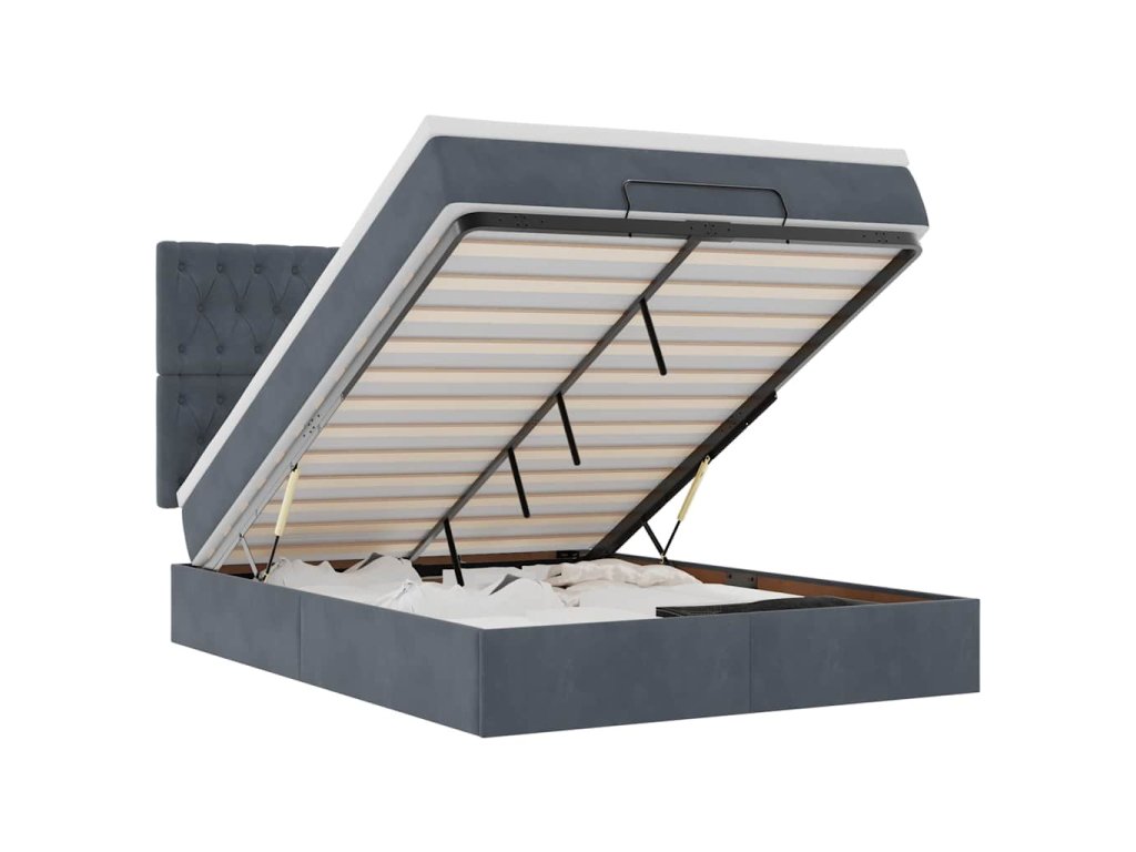 - Veľký úložný priestor pod posteľou: Vďaka hydraulickému zdvíhaciemu mechanizmu ponúka rám postele dostatok úložného priestoru pod posteľou, čím sa maximalizuje priestor bez toho, aby zaberal ďalšiu podlahovú plochu. Jednoduchým potiahnutím rukoväte sa lamelová základňa hladko zdvihne, čo vám umožní získať veci rýchlo a bez námahy.