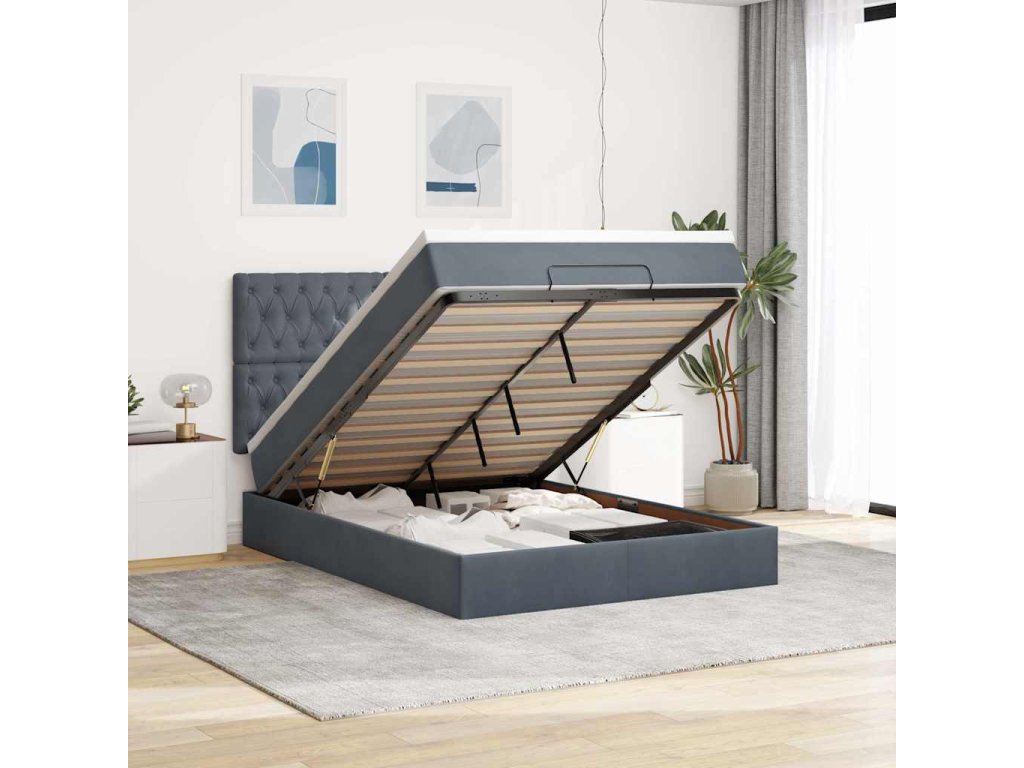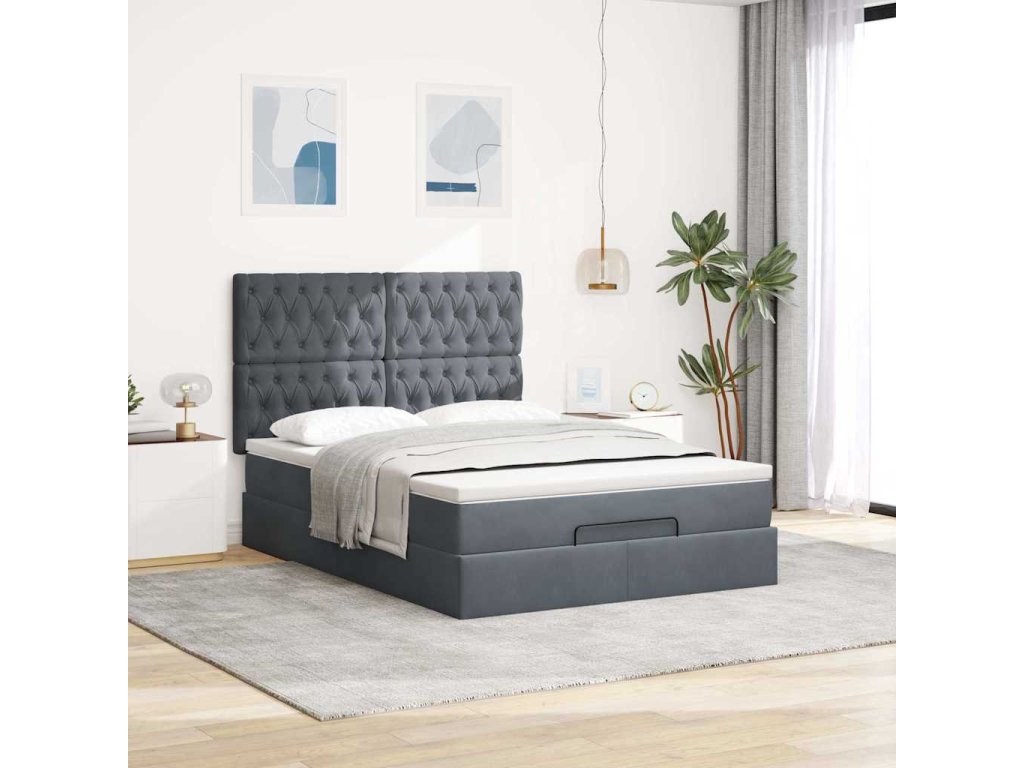 Multidom Osmanská posteľ s matracmi tmavošedá 140x200cm zamat